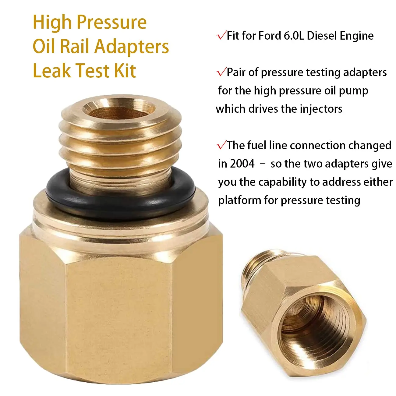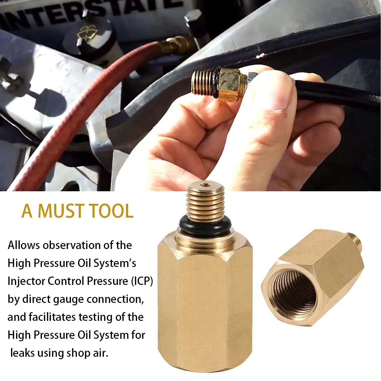 High Pressure Oil Rail Adapters Leak Test Kit--Allows observation of the High Pressure Oil System's Injector Control Pressure (ICP) by direct gauge connection, and facilitates testing of the High Pressure Oil System for leaks using shop air